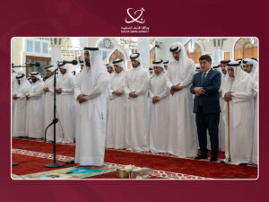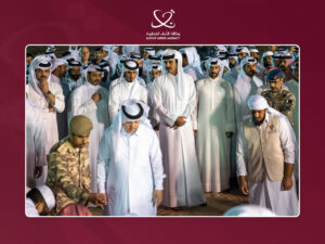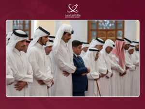 Also performing the prayer were HH the Personal Representative of the Amir Sheikh Jassim bin Hamad Al-Thani; HH Sheikh Abdullah bin Khalifa Al-Thani; HH Sheikh Mohammed bin Khalifa Al-Thani; HE Sheikh Jassim bin Khalifa Al-Thani; and HE Prime Minister and Minister of Foreign Affairs Sheikh Mohammed bin Abdulrahman bin Jassim Al-Thani.