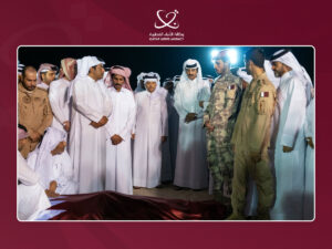 HH the Amir participated alongside the families of the martyrs in the funeral procession, and offered his condolences to the martyrs’ relatives, asking Allah to bestow mercy upon the martyrs, to grant them paradise, and to inspire their families with patience and solace.